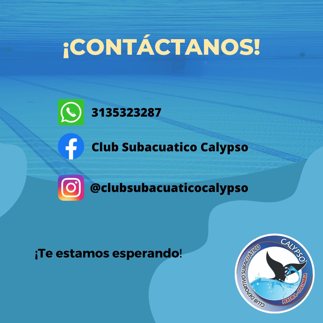 Contáctanos Email: clubcalypso3000@gmail.com Teléfono: +57 3135323287 Piscinas Olímpicas Pereira. Risaralda, Colombia Síguenos Club Subacuático Calypso clubsubacuaticocalypso