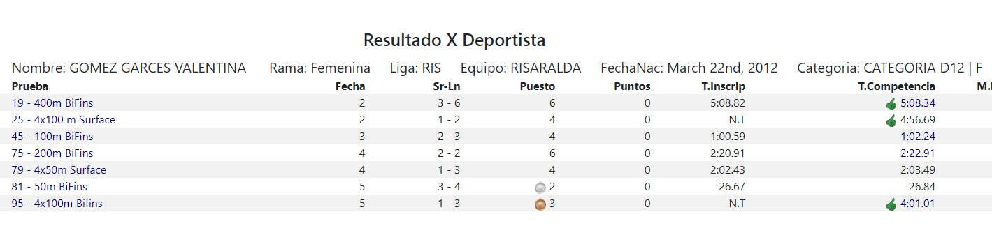 Valentina obtuvo el 2do lugar en la prueba de 50 bialetas y 3er lugar en la prueba de relevos 4×100 bialetas mixto, formando parte del equipo de 13 deportistas que representaron a nuestro departamento.